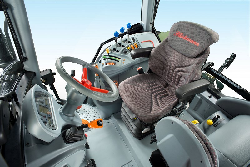 Posebej elegantna in udobna kabina je elegantna. Vsebuje intuitivne, barvno kodirane in ergonomsko oblikovane krmilne elemente na desni strani voznika. Upravljalne ročice za dodatne razdelilnike so preoblikovane in sedaj ponujajo tudi naslednje funkcije: funkcija mirovanja, plavajoči položaj in funkcija kick-out. Prostornost in jasni zunanji pogledi zaradi širokega vozniškega sedeža in velikih oken, idealni tudi za uporabo čelnega nakladalnika. Tiho zahvaljujoč "tihim hidravličnim blokom" in odlični zvočni izolaciji motorja, kar ustvarja prijetno delovno mesto tako za terensko delo kot za hitre cestne vožnje. Priročna vožnja v vseh razmerah podnevi in ponoči zaradi šestih sprednjih luči, dveh luči na centralnem stebru kabine, dveh sprednjih žarometov in štirih luči na zadnjem delu strešne plošče. Elektronski sistem za odklop akumulatorja se nahaja v kabini.